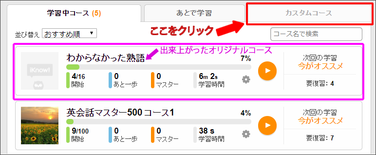 だから、私はメールマガジンを読む時に、iKnowのカスタムコースに登録しながら読みます。